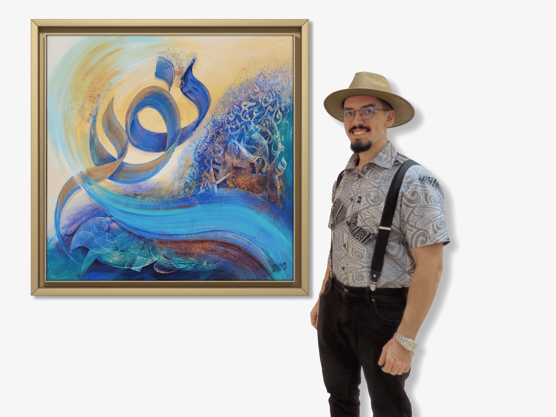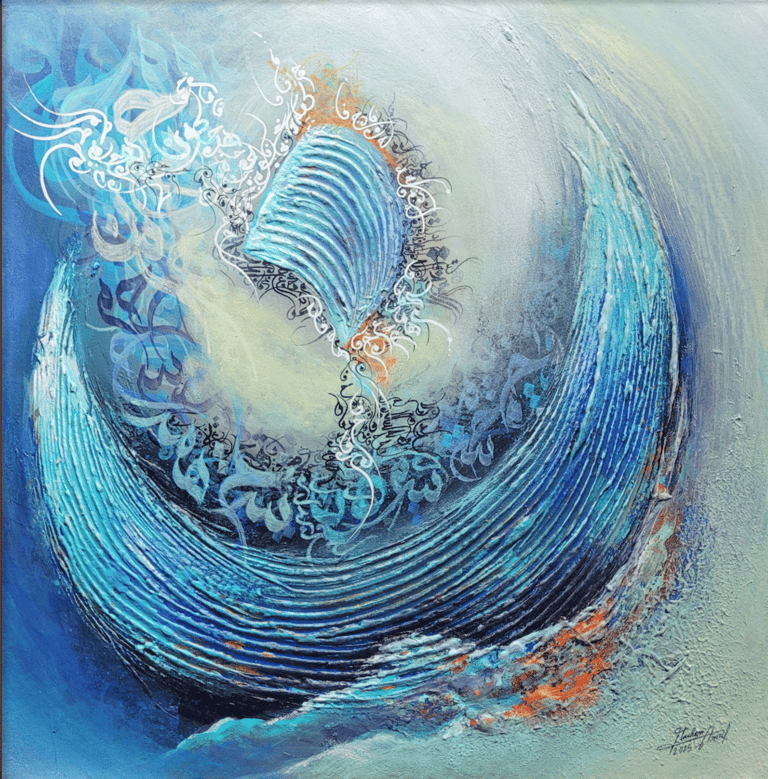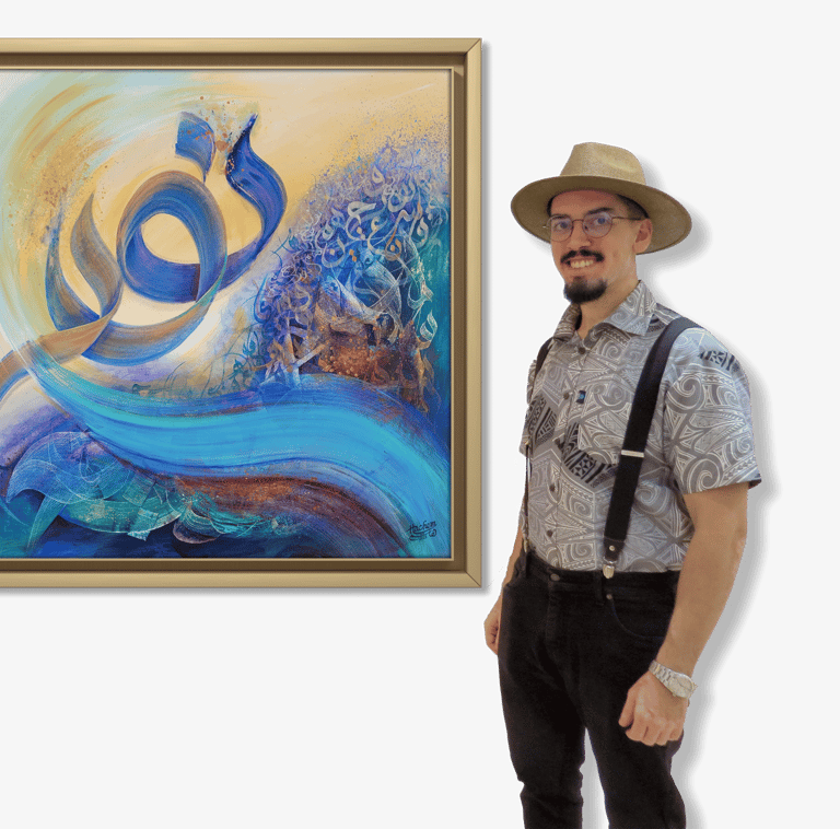« Découvrez l’univers artistique de Hachem Amzil, où la calligraphie, le silence, la lumière et le mouvement du signe s’unissent. Son art devient une méditation visuelle, un pont entre l’âme et la beauté universelle. »