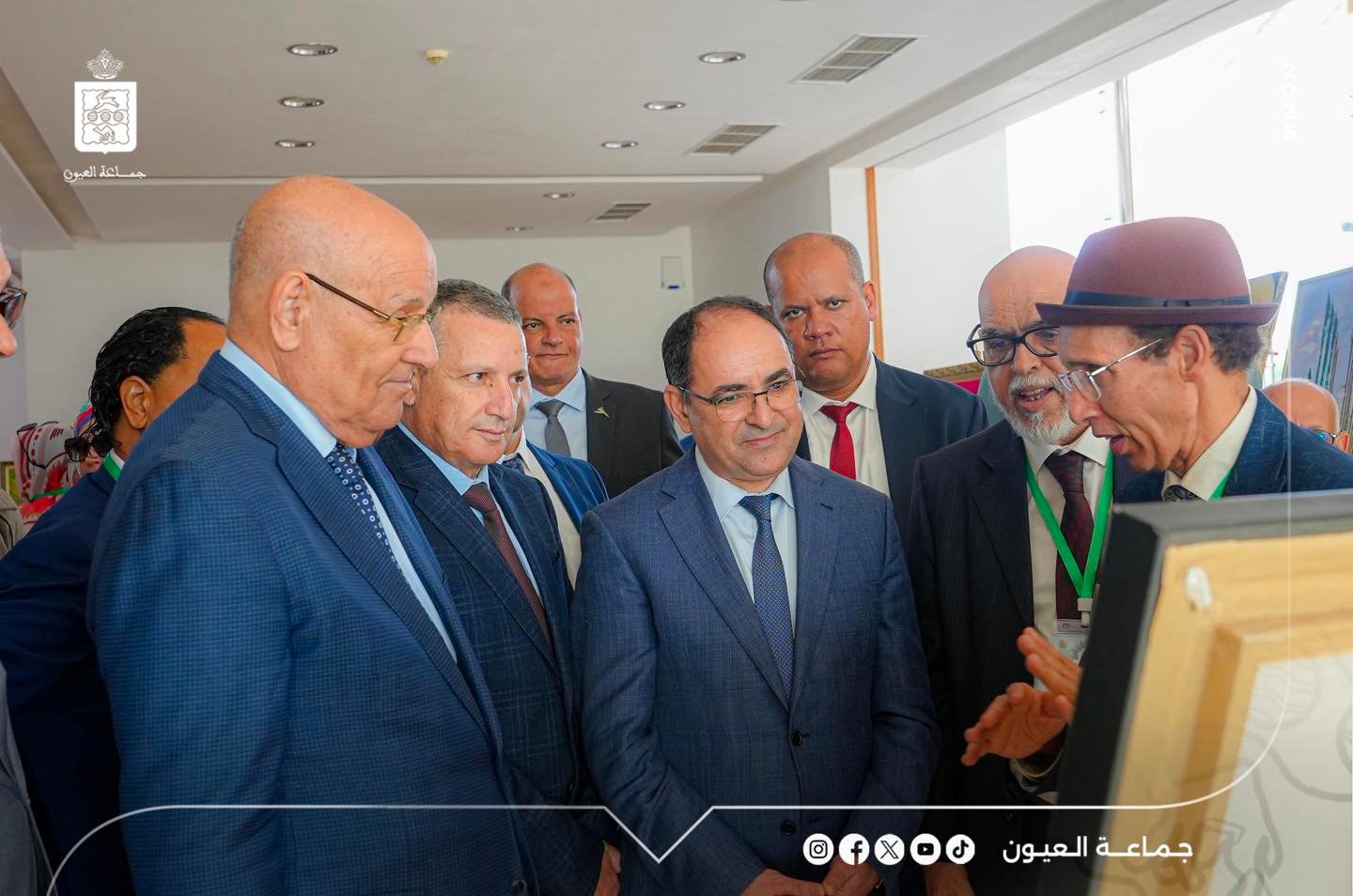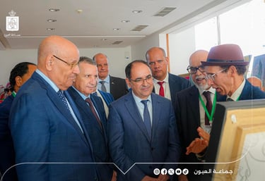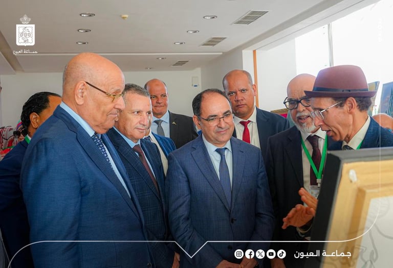 The opening ceremony took on a remarkable official and cultural character, marked by the presence of Mr. Moulay Hamdi Ould Errachid, President of the Laâyoune Municipal Council, alongside the Secretary-General of the Laâyoune Province and the Wali of Security, Mr. Hassan Abou Dahab, as well as the Vice Presidents of the Municipal Council.