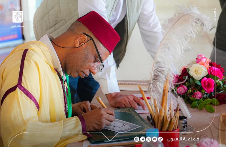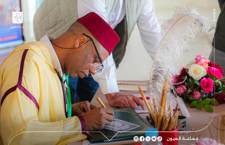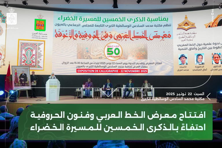 As part of the national celebrations of the fiftieth anniversary of the Glorious Green March and Independence Day, the city of Laâyoune hosted a major cultural event, further enriching its rich artistic heritage. The Mohammed VI Grand Media Library, under the authority of the Laâyoune Municipal Council, organized its first art exhibition dedicated to classical and contemporary Arabic calligraphy and ornamentation.The exhibition was inaugurated on Saturday, November 22, 2025, starting at 10:00 a.m.