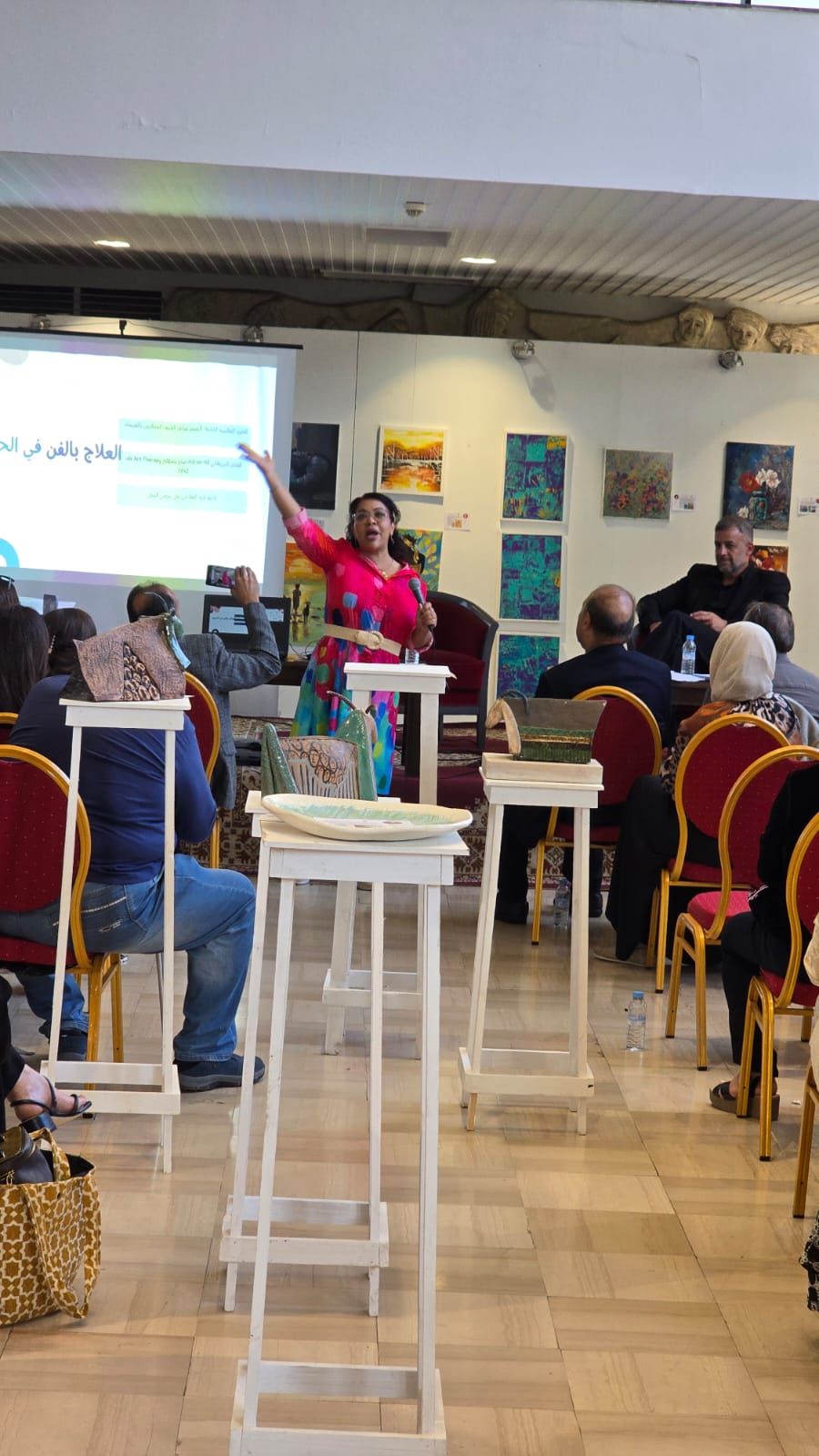 La première, animée par l’artiste libanais Hicham Takache, portait sur des informations techniques relatives à la peinture à l’huile, tandis que la seconde, présentée par l’artiste Mona El Rubi, abordait le thème de l’art-thérapie et son impact sur le bien-être et l’expression personnelle.